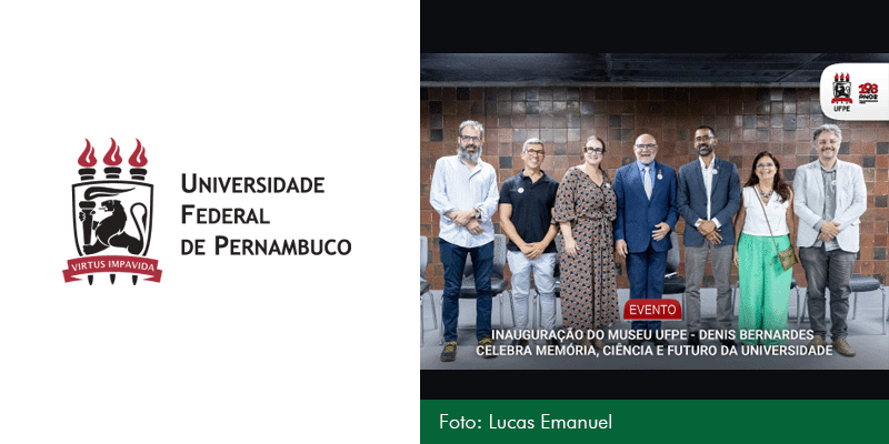 A Universidade Federal de Pernambuco (UFPE) inaugurou, na última sexta-feira (14), no Edifício Celso Furtado, o Museu UFPE – Denis Bernardes, novo equipamento cultural dedicado à preservação, valorização e difusão do patrimônio universitário. A cerimônia contou com a abertura da exposição “UFPE: portadora de futuros”, que apresenta obras, documentos e objetos representativos da produção artística, científica e tecnológica da instituição. O museu, vinculado à Superintendência de Cultura (Supercult) da UFPE e localizado na antiga biblioteca da Sudene, nasce com a missão de fortalecer a memória institucional, ampliar ações educativas e aproximar a sociedade do conhecimento gerado pela Universidade. Na abertura do evento, os estudantes do curso de Música Renato Melo (clarinete) e Luís Paulo (vioão) fizeram uma apresentação cultural.
