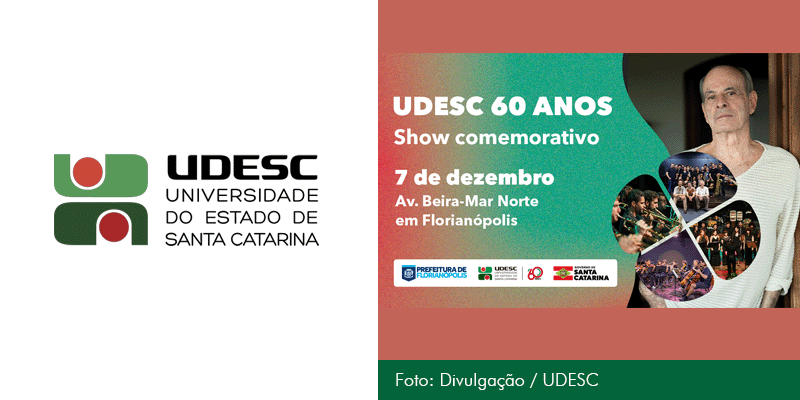 A Prefeitura Municipal de Florianópolis compartilha deste momento de comemoração dos 60 anos da Udesc, com apoio ao evento. A partir das 17h, sobem ao palco BigBand Udesc, Orquestra Acadêmica Udesc, Madrigal Udesc, a banda Grillo e os Mosquitos, e os solistas Alicia Cupani, André Luiz, Bruna Nogueira, David Toledo, Elô Gonzaga, Gio Keiko e Kako Oliveira.